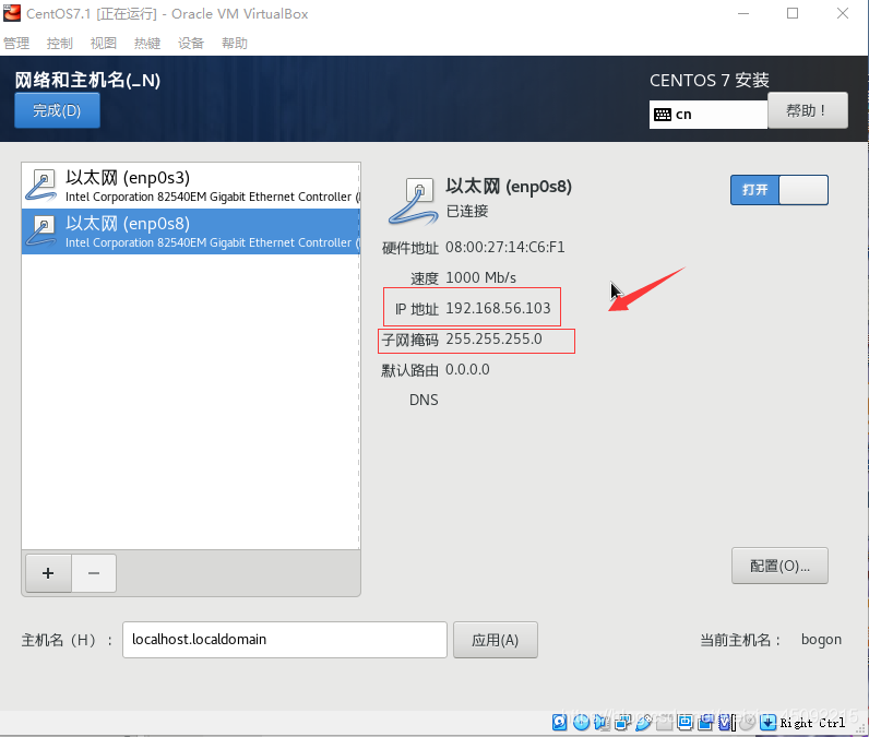 需要注意的是在參考上篇博客安裝CentOS設置網絡連接時兩個網關都要打開,具體如下: