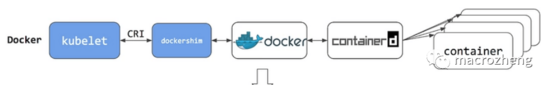 如果你使用Docker作為K8S容器運行時的話,kubelet需要先要通過 dockershim 去調用Docker,再通過Docker去調用containerd。