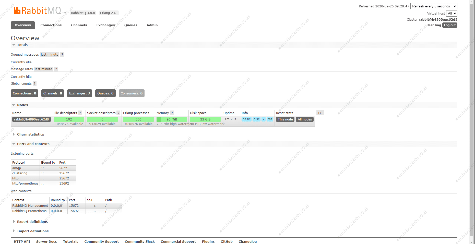 -e RABBITMQ_DEFAULT_USER=ling:設置用戶名為 ling