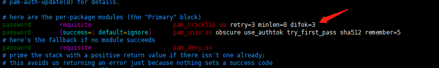 sudo vim /etc/pam.d/common-password