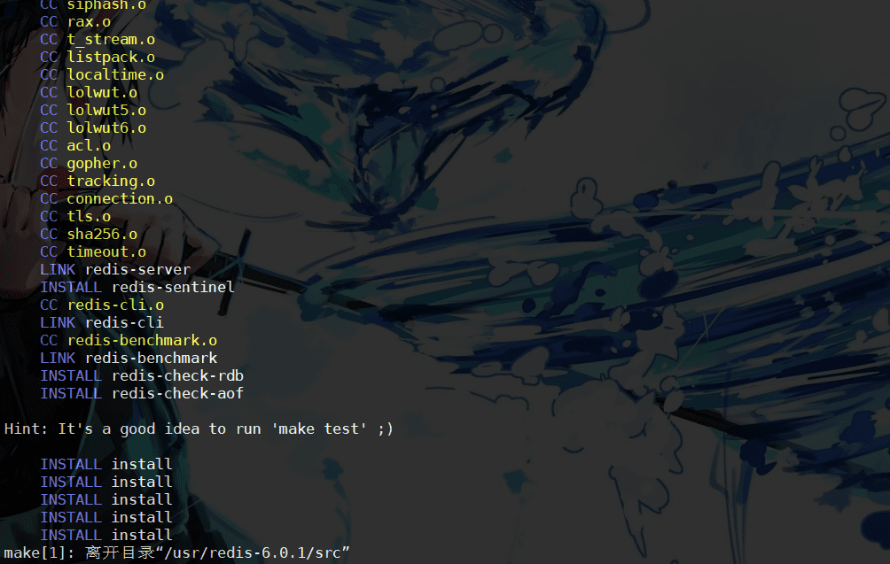 make[1]: 離開目錄“/usr/redis-6.0.1/src”