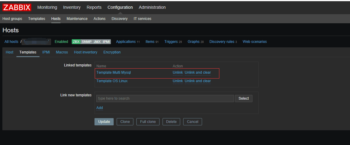 3、在需要監(jiān)控的主機(jī)上增加新創(chuàng)建的模板