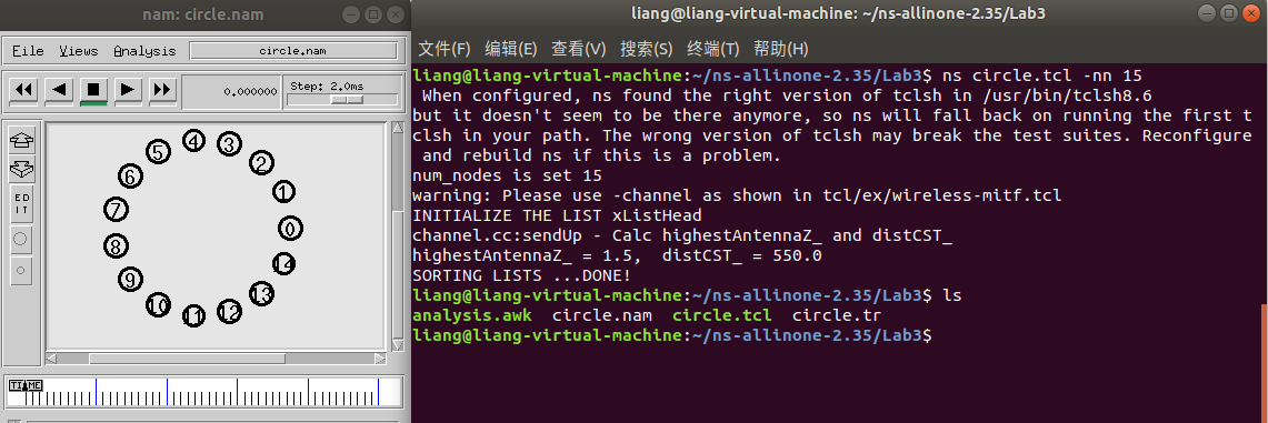(2)重新修改節點數為8,運行結果如下,但此時文件夾中并沒有新增額外的circle.nam和circle.tr文件。
