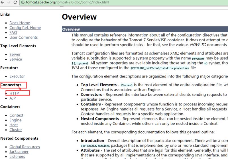 接著查看Connectors下的HTTP部分,這個和Tomcat下的conf中的server.xml配置文件的結構有很大的相關性,只要你很熟悉server.xml配置,那么找到這個不是問題
