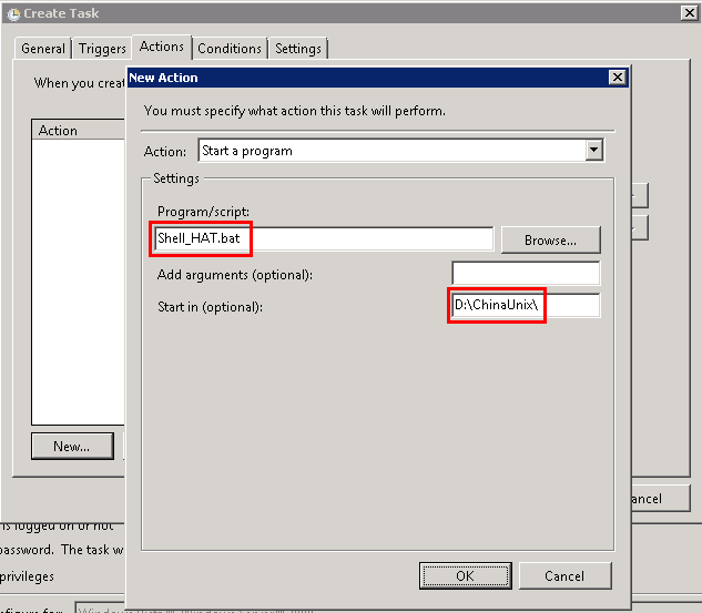 我今天也被這個問題給坑了,幾乎花了一天的時間來排錯。單獨執行bat腳本一切正常,在Windows 2003的任務計劃里面執行bat腳本也沒有問題,但是只要放到Windows 2008的任務計劃里面就不行。在國內、國外的網站上一通搜索,終于湊齊了所有的注意事項。步驟總結如下:
