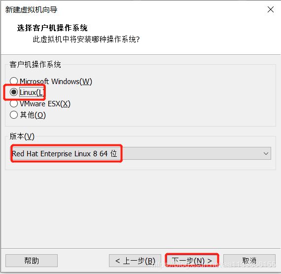 5.linux版本選擇,因為VMware15.5版本選擇里面沒有centios8.1,這里我們選擇Rded Hat Enterprise Linux 8 64位