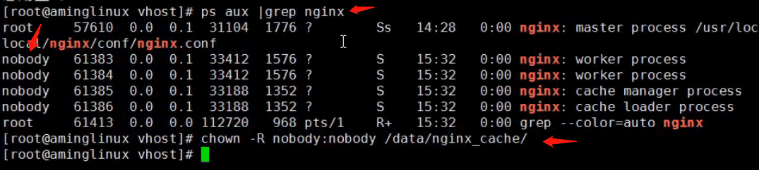 所以這里要把 緩存目錄 的所有者所屬組修改成 nobody