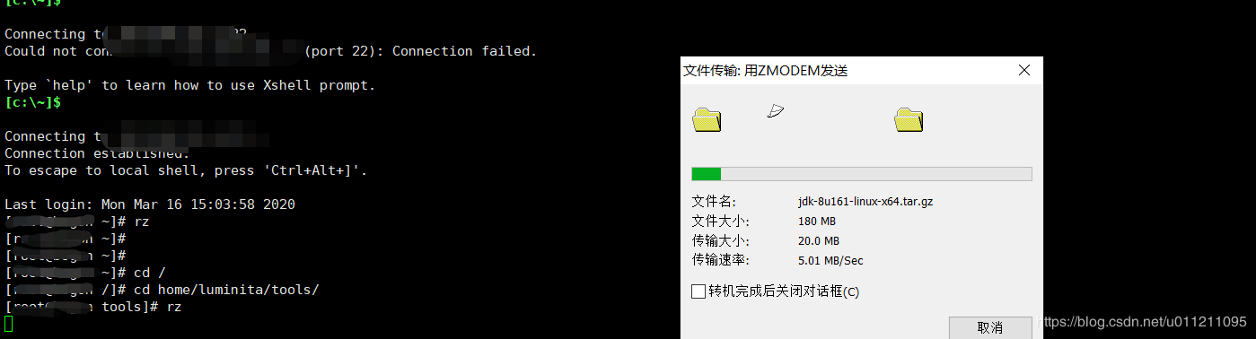 使用rz命令進行上傳,如果沒有rz命令先使用yum -y install lrzsz進行安裝