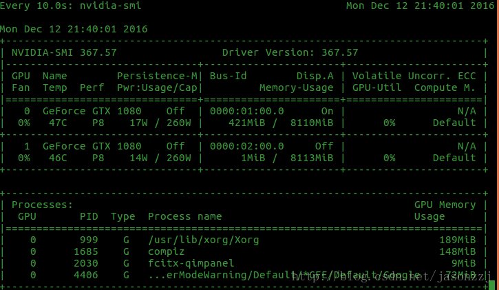 Nvidia自帶了一個nvidia-smi的命令行工具,會顯示顯存使用情況: