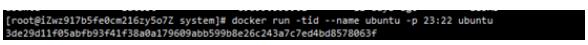 docker run -tid --name ubuntu -p 23:22 ubuntu:將新建的docker命名為ubuntu并映射到23端口
