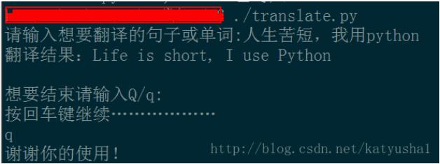 OK,完美運行,但是細細一看,似乎還不完美,因為每次都要切換到文件所在目錄才能運行,為了更方使用程序,我們可以將translate.py連接到/usr/bin,或者/usr/local/bin,等等配置了系統環境變量的目錄下