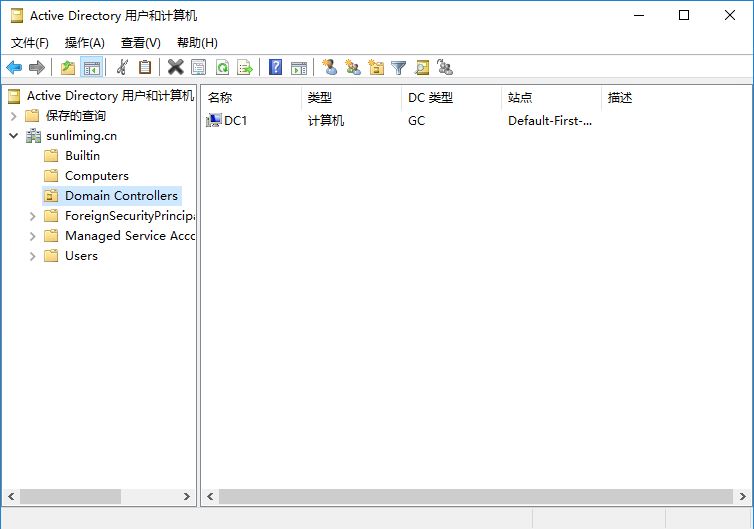 9)重啟后進入系統。此時AD部署成功,點 工具- Active Directory用戶和計算機,查看部署的的域