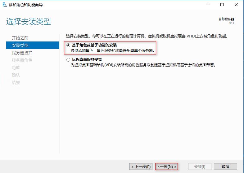 3)選 基于教授和基于功能的安裝,點 下一步;