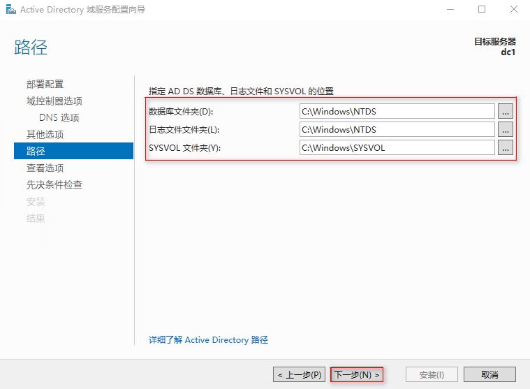 AD DS數據庫、日志文件夾和sysvol文件夾,出于安全考慮建議放在其他盤