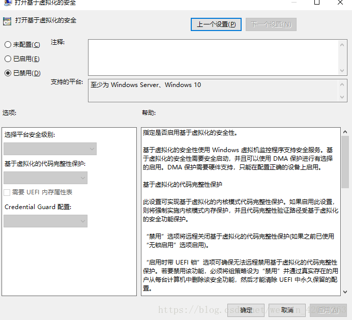 雙擊進(jìn)入打開基于虛擬化的安全,選擇已禁用,確定