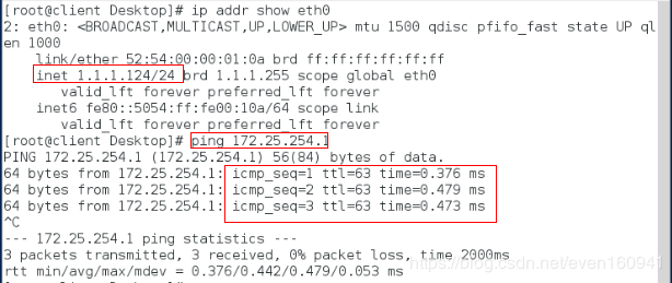 最后在客戶端嘗試ping172.25.254網段,發現成功了。
