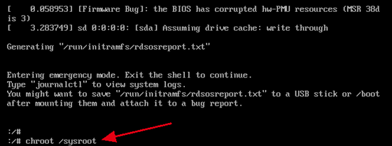 重啟客戶機后進入如下界面,執行chroot /sysroot