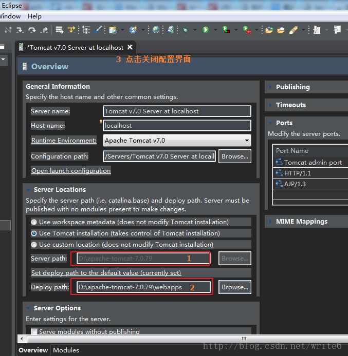 9、雙擊 tomcat 實例,打開實例配置界面,修改 Server Path 為 D:\apache-tomcat-7.0.79