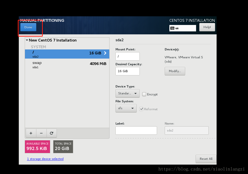 新掛載點使用以下分區方案:標準Standard Partition,完成Done。