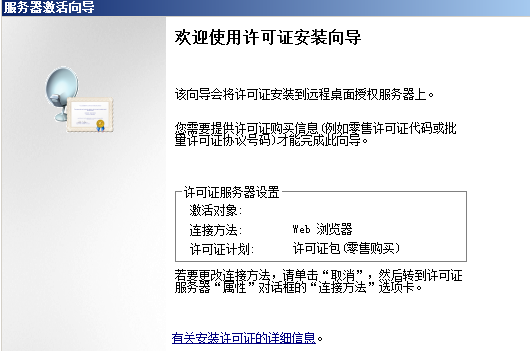 在“許可證程序”中建議選擇“企業協議”,選擇其它也無妨。