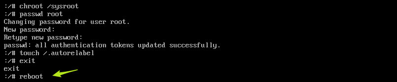 第四個里程碑 -- 用 "chroot /sysroot " 命令進入系統;