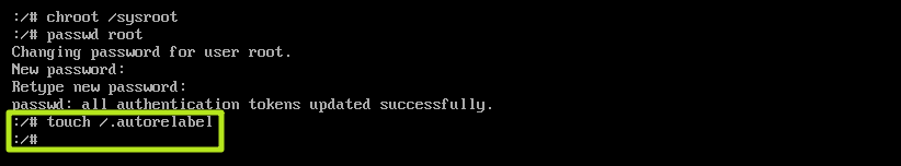 4.由于selinux開啟著的需要執行以下命令更新系統信息,否則重啟之后密碼未生效