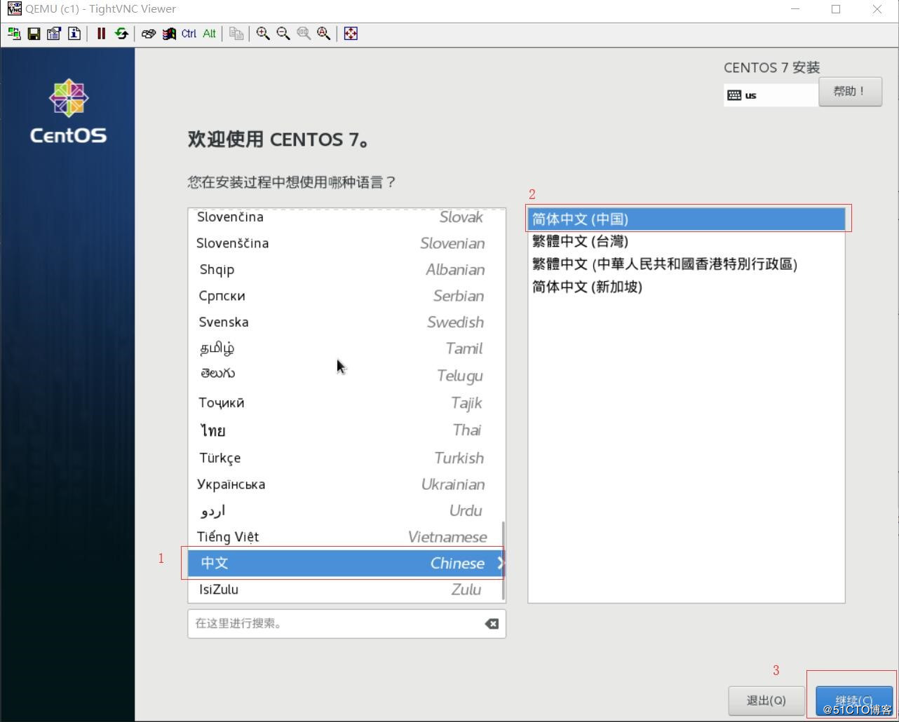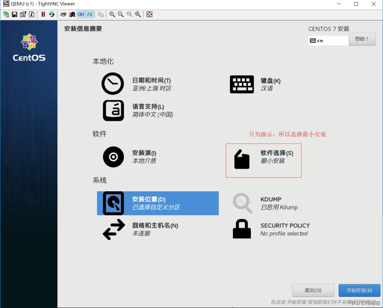 安裝步驟和平時安裝操作系統的方法一樣,安裝完成后重啟,TightVNC Viewer便斷掉,在linux中可查看到虛擬機c1的狀態是關閉的