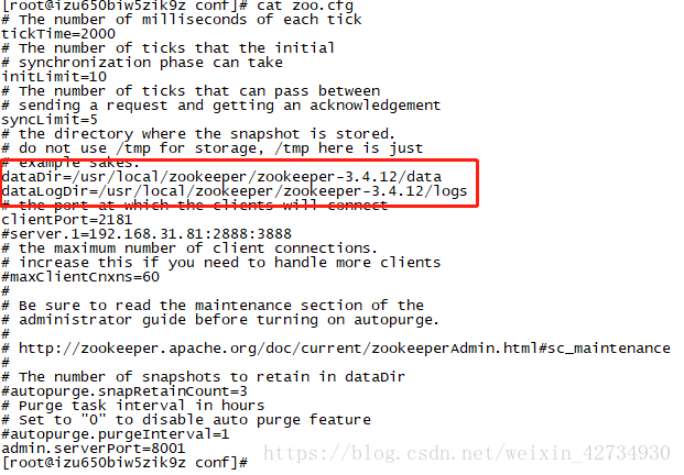 4.編輯zoo.cfg,增加2個目錄在根目錄