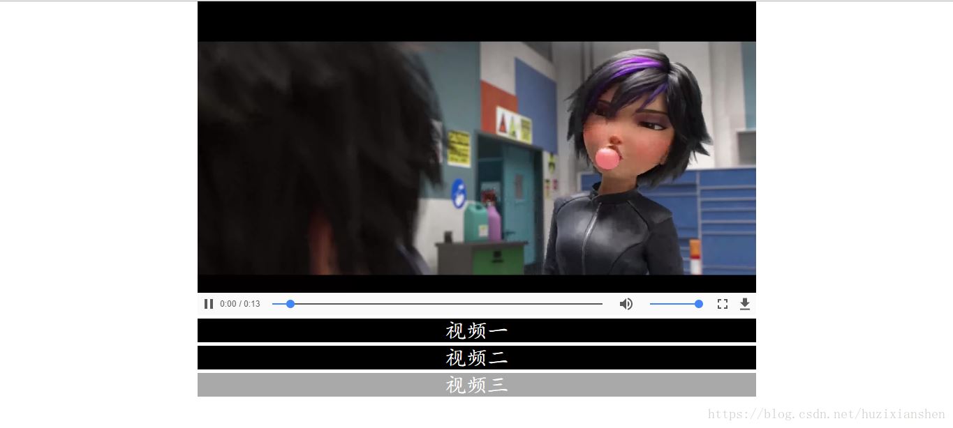 接下來就是編寫<script>腳本控制點擊列表播放該視頻了