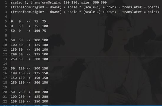 這個公式的話,其實就比較通用,可以用在別的利用到 transform 屬性的場景,至于怎么推導的話,我是用的笨辦法