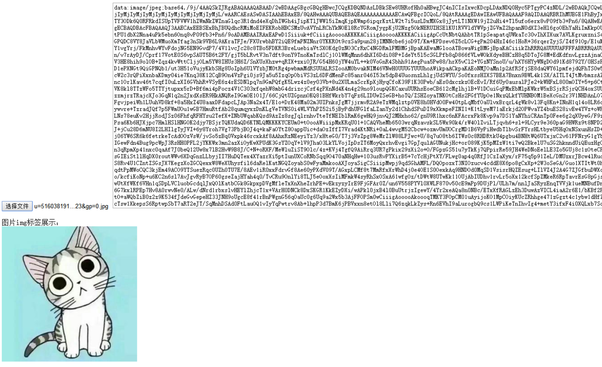 img_area.innerHTML = '<div>圖片img標簽展示:</div><img src="'+this.result+'" alt=""/>';