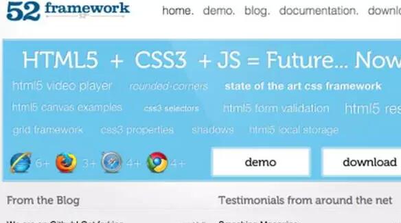 52Framework是一個結合了HTML5、CSS3和JavaScript的強大的前端框架。該框架提供了一些封裝好的內置工具,包括HTML5視頻播放器、HTML5表單驗證器,CSS3屬性工具、柵格系統和HTML5畫布示例等。