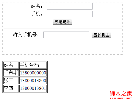 錄入聯系人,聯系人有姓名、手機號碼2個字段,以手機號作為key存入localStorage;