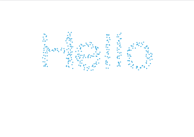 使用 canvas 的 getImageData 方法,可以獲取一個(gè) ImageData 對象,這個(gè)對象用來描述 canvas 指定區(qū)域內(nèi)的像素?cái)?shù)據(jù)。也就是說,我們可以獲取 “Hello” 這個(gè)文本每個(gè)像素點(diǎn)的位置和顏色,也就可以在指定位置生成粒子,最后形成的效果就是粒子拼湊成文本了。