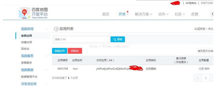 Referer白名單:指的是誰可以訪問你的應(yīng)用,通過什么方式訪問你的應(yīng)用,這里填寫一個星號' * ',意思是全部人都可以訪問,因為只是做測試可以這樣做,到以后項目如果使用到,會有相關(guān)的加密方式等等!!然后點擊提交完成創(chuàng)建?。?br />完成應(yīng)用的創(chuàng)建后,出現(xiàn)如下界面:
