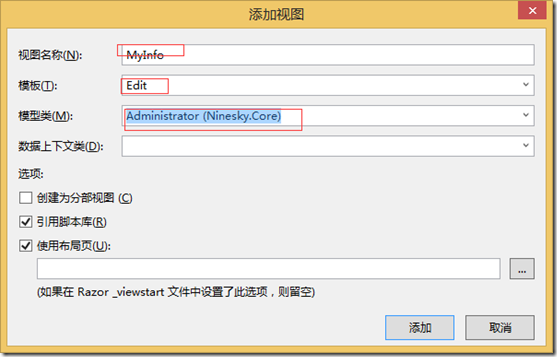 在在AdminController中 添加處理方法MyInfo(FormCollection form)方法。