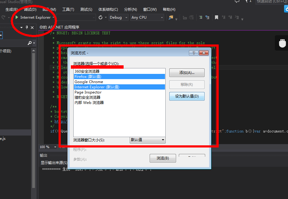 可以搜集到你本地所有的瀏覽器,然后你可以直接選擇你要使用的瀏覽器進行預覽或者調試就可以了,比以前是方便多了,這個功能在VS2012中也有了,不過在這里再記錄一下。