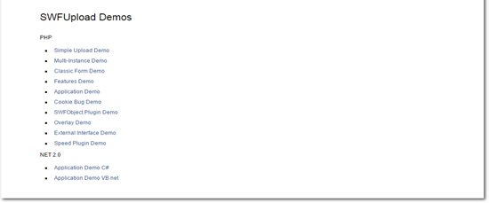 0. 首先下載swfUpload 包,在下載的包中有samples文件夾,samples下有demos文件夾,打開demos文件夾可看到如下圖所示結構