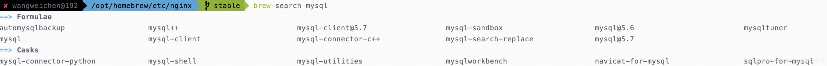 首先搜索是否包含想要安裝的 mysql 版本, 這里以 mysql@5.7 為例