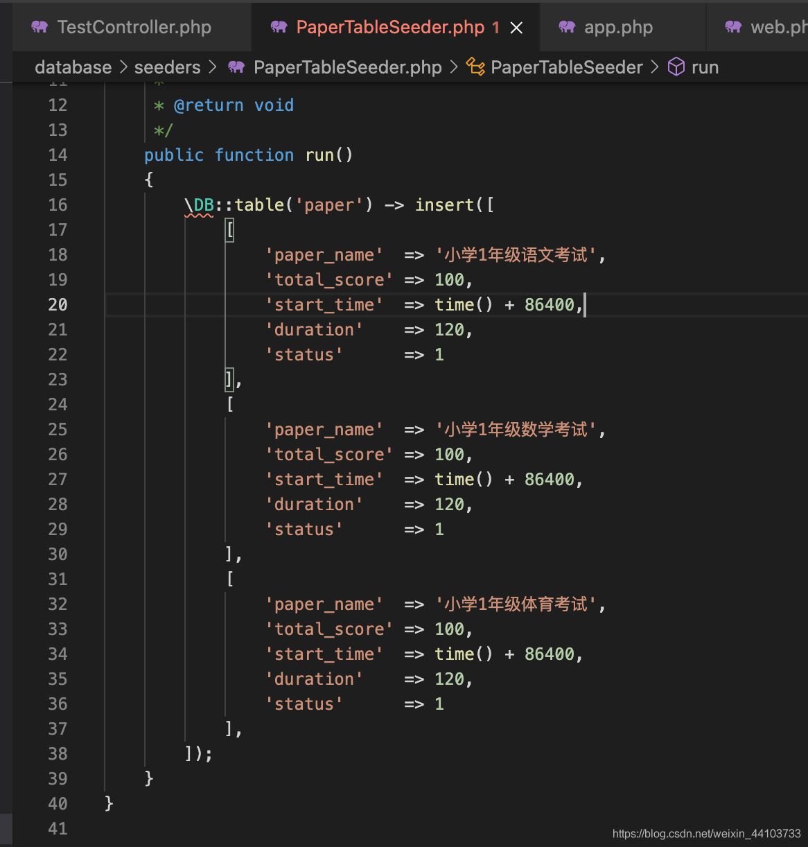 例:以paper為例,則名稱應(yīng)該為PaperTableSeeder