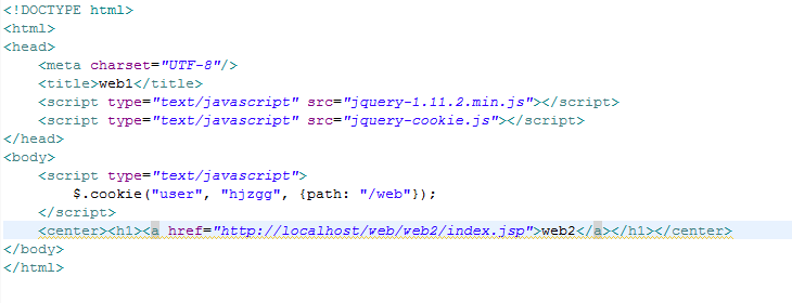 這樣就可以保證cookie在同一域下。web2工程中的index.jsp中的輸出內(nèi)容如下: