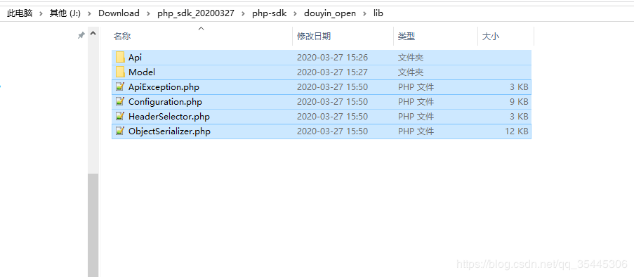 3.將解壓出來的php-sdk/douyin_open/lib目錄里面的所有文件和文件夾全部復制到剛才新建的Douyin\Open目錄下