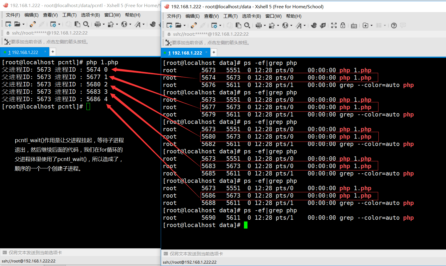 //我們把pcntl_waitpid放到for循環外面,那樣在for循環里創建子進程就不會阻塞了
