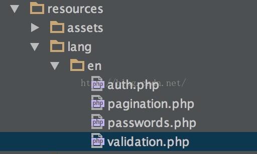 在項目中找到“resources”目錄下的“lang” 中的 “en”文件夾中的“validation.php”文件,