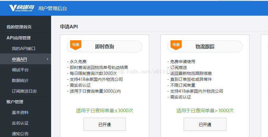 背景:不久前,設計實現了京東api的功能,發現如果換了其它快遞再重新設計,豈不是會浪費太多的時間,所以選個第三方提供的快遞API是最為合理的,下面給出快遞鳥和快遞100的設計實現。
