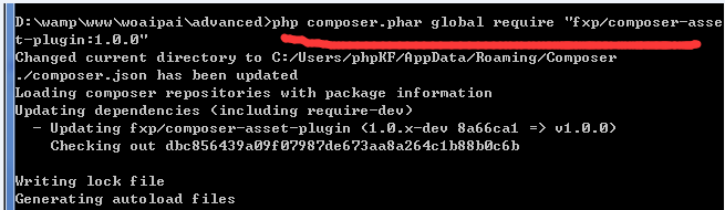 執行命令:php composer.phar global require "fxp/composer-asset-plugin:1.0.0"