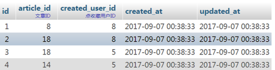 用attach()方法添加關(guān)聯(lián),比如讓id為1用戶收藏id為1的article