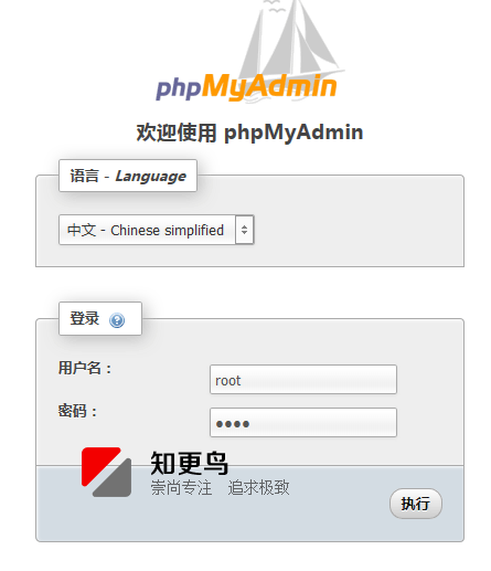進入數據庫管理工具登錄頁面,用戶名及密碼都是:root