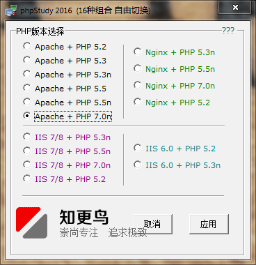 選擇之后,點擊應用按鈕,phpStudy會自動重啟服務并切換到你選擇的環境。