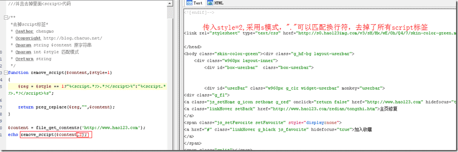 $reg = $style == 1?"%script.*?>.*?/script>%":"%script.*?>.*?/script>%s";